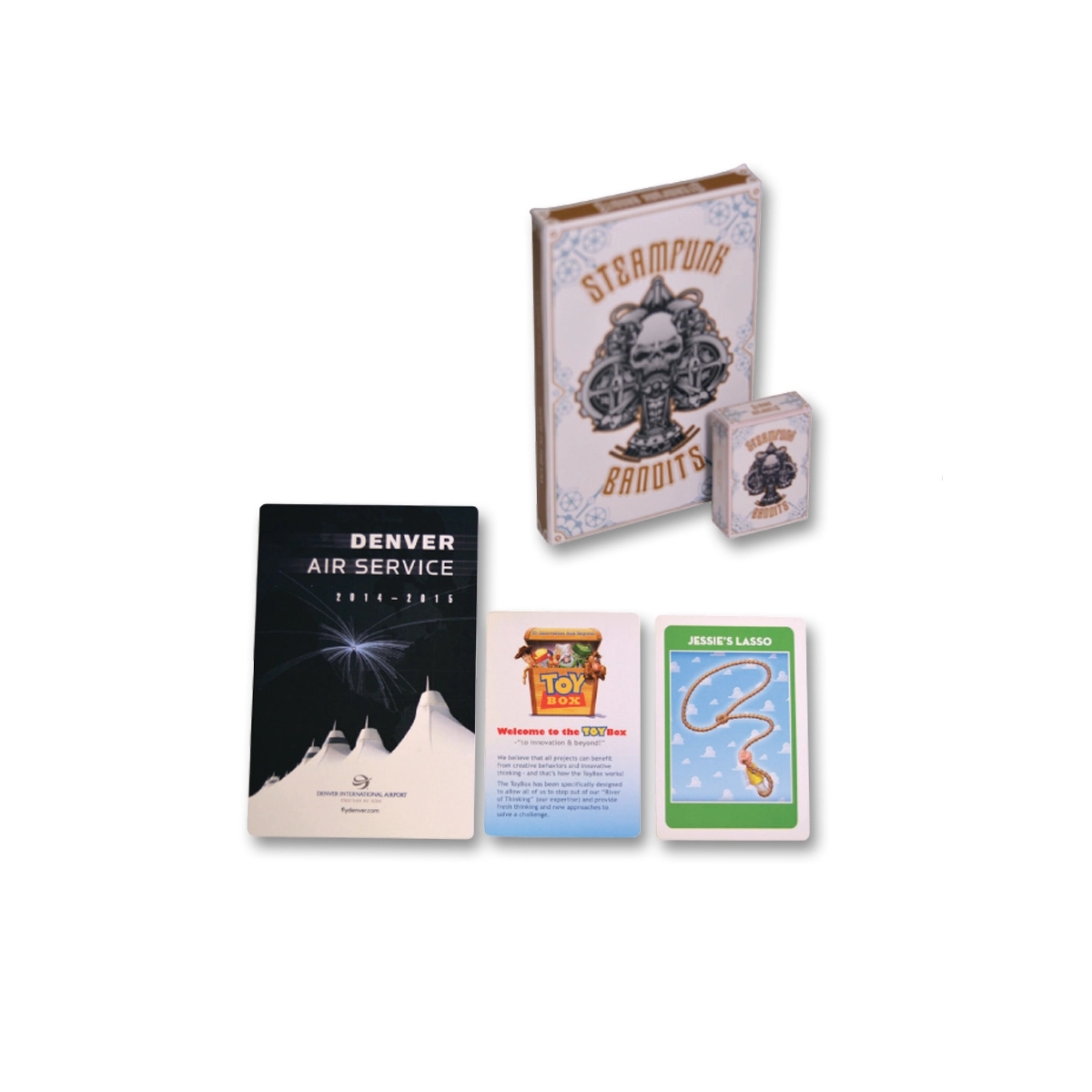 Take care of several ends of your advertising campaign from tradeshows to direct mailing efforts with these custom size games and cards. This product also offers endless corporate training potential with the ability to create things like flash cards. This product can come with any number of cards with packaging customized to your specs. Our skill with custom playing cards is unmatched, so if you can dream it, we can do it!