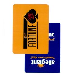 Turn the heads of potential clients during your next gaming themed fundraiser by using decks of these playing with a three color custom back. Our custom playing cards are fashioned with unparalleled quality. The material used is of the smoothest playing card stock attainable anywhere. The cards feature a polished white surface, a lifetime plastic coating and excellent printing quality, ensuring a top quality product and a long lasting advertising gift.